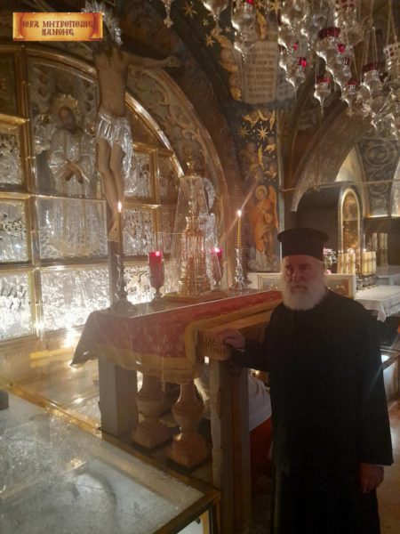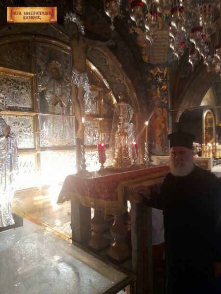 Ο Σεβασμιώτατος επισκέφθηκε τους Αγίους Τόπους, προσκυνητής στον Πανίερο Ναό της Αναστάσεως του Κυρίου, στην Αποκαθήλωση, στον Πανάγιο Τάφο, στον Φριχτό Γολγοθά και στο Ελληνορθόδοξο Πατριαρχείο των Ιεροσολύμων.