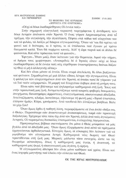 Το μήνυμα της αυριανής Κυριακής  ΙΒ΄ Λουκά ή των δέκα λεπρών δημοσίευσε η Ιερά Μητρόπολη Ξάνθης και Περιθεωρίου, αναπτύσσοντας το θέμα τι κάνουμε μπροστά στις ευεργεσίες του Θεού… Είμαστε ευγνώμονες, αχάριστοι ή απλά στιγμιαία ανακουφισμένοι;