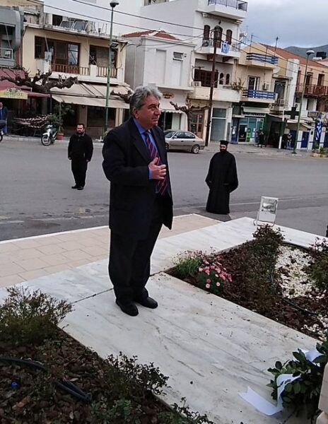 Εν συνεχεία ο Σεβασμιώτατος Μητροπολίτης κ. Γεράσιμος, συνοδευόμενος από Ιερείς, κατευθύνθηκε στην Πλατεία Νεαπόλεως και στο Ηρώο, όπου τέλεσε επιμνημόσυνο δέηση υπέρ αναπαύσεως της ψυχής πάντων των πεσόντων υπέρ της Πίστεως και της Πατρίδος. Δάφνινο στεφάνι κατετέθη από τον Δημοτικό Σύμβουλο της Κοινότητος Νεαπόλεως, κ. Εμμανουήλ Ζερβάκη. Ακολούθησε ενός λεπτού σιγή και ο Εθνικός Ύμνος από τους Ιεροψάλτες του Ιερού Ναού.