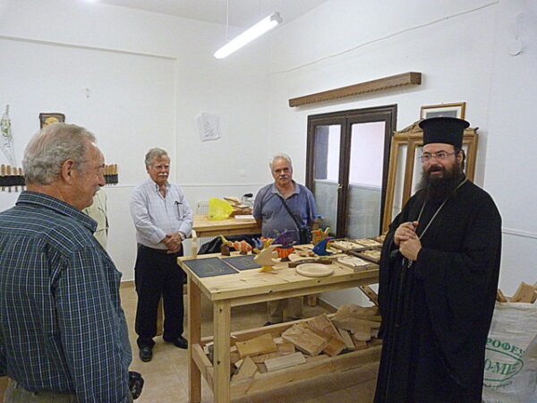 Πριν την έναρξη της εκδήλωσης, ο Σεβασμιώτατος είχε την ευκαιρία να επισκεφθεί την παρακείμενη αίθουσα μαθημάτων της Σχολής Ξυλογλυπτικής της Ιεράς Μητροπόλεώς μας και να συγχαρεί τον διδάσκαλο κ. Νικόλαο Μάνεση και τους μαθητές για τα θαυμάσια ξυλόγλυπτα.