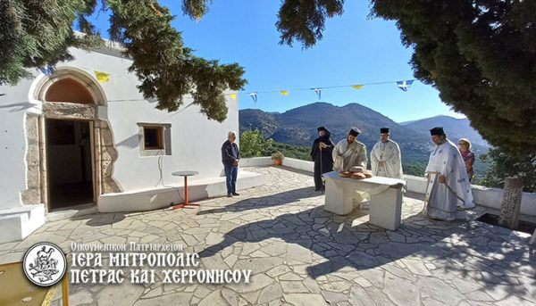 Στον Ιερό Ναό Παναγίας Βεργόπουλου περιοχής Νεαπόλεως Λασιθίου ιερούργησε ο Σεβασμιώτατος Μητροπολίτης Πέτρας και Χερρονήσου κ. Γεράσιμος επί τη εορτή των Αγίων και Δικαίων Θεοπατόρων Ιωακείμ και Άννης την Παρασκευή 9 Σεπτεμβρίου 2022.