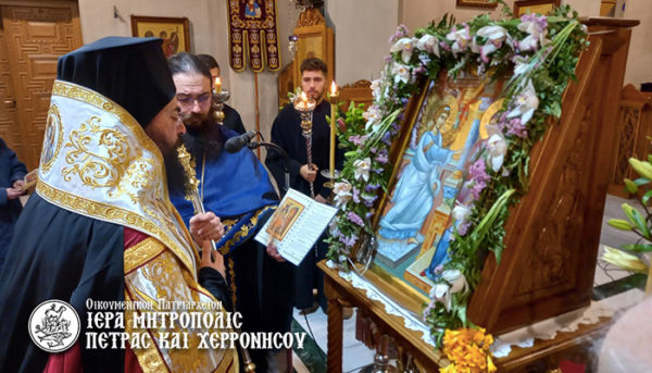 Το εσπέρας της Παρασκευής 25 Μαρτίου ο Σεβασμ. Μητροπολίτης κ. Γεράσιμος χοροστάτησε στον Εσπερινό επί τη Εορτή της Συνάξεως του Αρχαγγέλου Γαβριήλ και εν συνεχεία στην Ακολουθία της Γ΄ Στάσεως των Χαιρετισμών προς την Υπεραγία Θεοτόκο, που τελέσθηκαν στον Ιερό Ναό Ευαγγελισμού της Θεοτόκου πόλεως Αγίου Νικολάου.