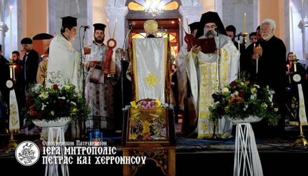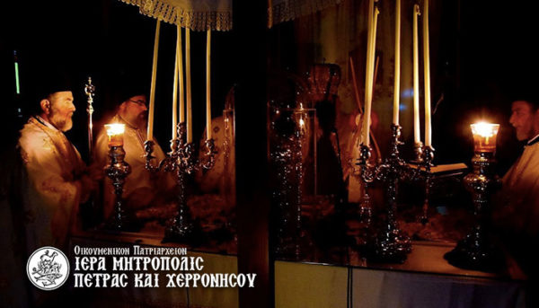 Έπειτα, ο Πρωτοσύγκελλος της Ιεράς Μητροπόλεως, Πανοσ. Αρχιμ. Τίτος Ταμπακάκης ανέγνωσε την Εγκύκλιο του Μητροπολίτη Πέτρας και Χερρονήσου κ. Γερασίμου επί τω Αγίω Πάσχα. Ακολούθησε ο Όρθρος και η Θεία Λειτουργία της Αναστάσεως, ιερουργούντος του Σεβασμ. Αρχιεπισκόπου Τελμησσού κ. Ιώβ.