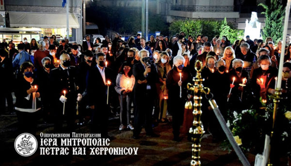 Η λιτανεία κατέληξε στον Ιερό Μητροπολιτικό Ναό Μεγάλης Παναγίας Νεαπόλεως όπου τελέσθηκε ο Εσπερινός της Αγάπης, χοροστατούντος του Σεβασμ. Αρχιεπισκόπου Τελμησσού κ. Ιώβ.