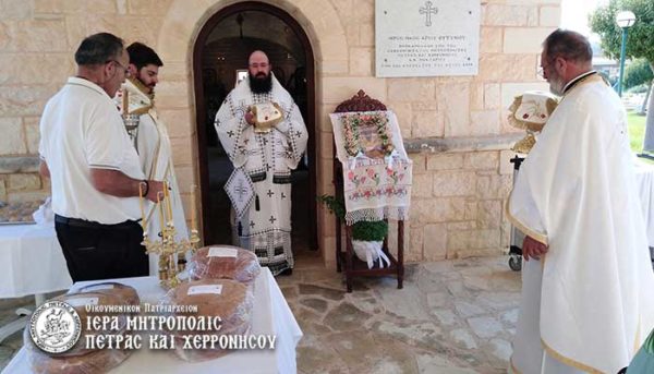 Την Τρίτη 24 Αυγούστου ο Σεβασμιώτατος Μητροπολίτης κ. Γεράσιμος ιερούργησε στον Ιερό Ναό Αγίου Ευτυχούς, που βρίσκεται εντός του ξενοδοχείου Caldera, στην Ανάληψη Χερσονήσου.