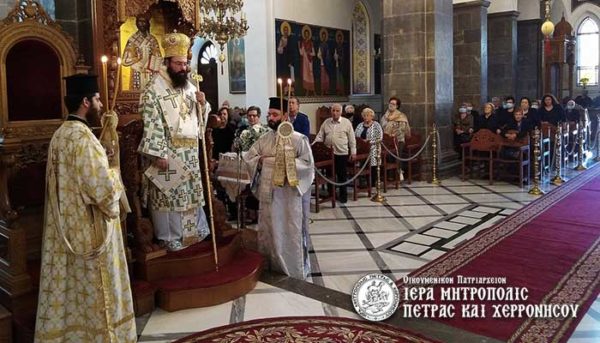 Στον Ιερό Μητροπολιτικό Ναό Μεγάλης Παναγίας Νεαπόλεως. όπου ιερούργησε αυτή την ημέρα ο Σεβασμιώτατος Μητροπολίτης Πέτρας και Χερρονήσου κ. Γεράσιμος, ο Πρωτοσύγκελλος της Ιεράς Μητροπόλεως Πανοσ. Αρχιμανδρίτης Τίτος Ταμπακάκης, κηρύττοντας τον Θείο Λόγο, ανέλυσε την ευαγγελική περικοπή της ημέρας: