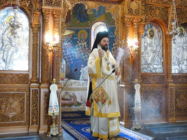 Τον Θείο Λόγο κήρυξε ο Θεοφιλέστατος, ο οποίος ευχαρίστησε τον Σεβασμ. Μητροπολίτη κ. Γεράσιμο για την αδελφική αγάπη και την φιλοξενία στον μεγαλόπρεπο και περικαλλή Ιερό Ναό που είναι αφιερωμένος στην Κοίμηση της Θεοτόκου.