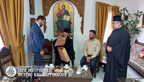 Ο Σεβασμιώτατος τον καλωσόρισε θερμώς και του ευχήθηκε μια καλλίκαρπη και δημιουργική θητεία, προσφέροντας του ως ευλογία την Ιερά Εικόνα Πάντων των εν Κρήτη Διαλαμψάντων Αγίων.