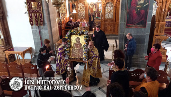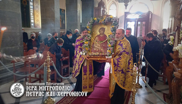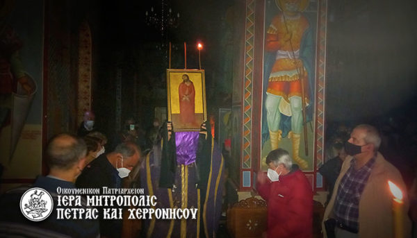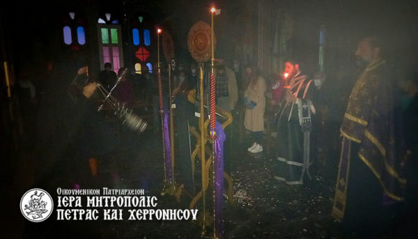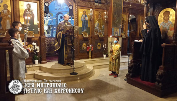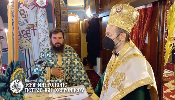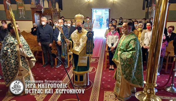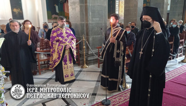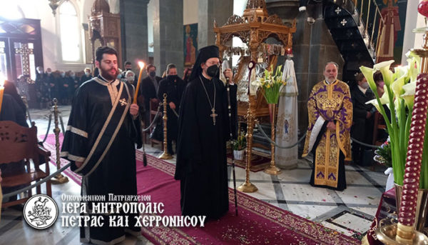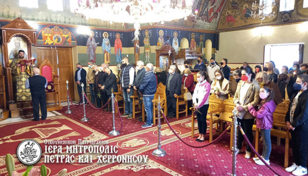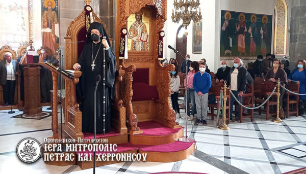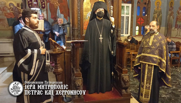 Σας υποδεχόμαστε σήμερα για πρώτη φορά στην πόλη μας, στην Ενορία μας, λειτουργούντα και αγιάζοντα ημάς, σας καλωσορίζουμε θερμώς και σας ευχαριστούμε πολύ για την παρουσία σας σε αυτή την ευχαριστιακή σύναξη, στην έναρξη της Αγίας και Μεγάλης Εβδομάδος, ευχόμενοι και προσευχόμενοι καρδιακώς ο Θεός της αληθείας και η Υπεραγία Θεοτόκος να σας σκεπάζουν, να σας οδηγούν και να σας κατευθύνουν σε απάνεμα λιμάνια δίχως θλίψεις και πειρασμούς».