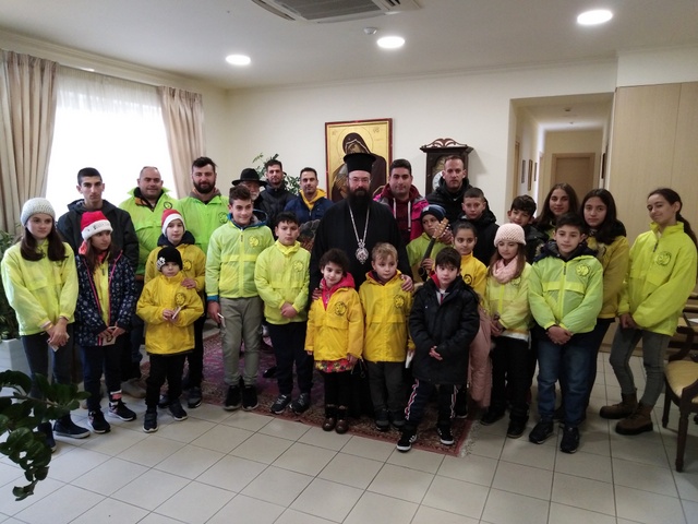 Ο προπονητής κ. Νικόλαος Ταμπακάκης, τα μέλη του Δ.Σ. και τα παιδιά της Ακαδημίας του Ποδηλατικού Ομίλου Νεαπόλεως επεσκέφθησαν το πρωί της Τρίτης 31 Δεκεμβρίου τα Γραφεία της Ιεράς Μητροπόλεως και έψαλαν στον Σεβ. Μητροπολίτη κ. Γεράσιμο τα Πρωτοχρονιάτικα Κάλαντα.