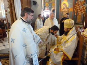 Την Κυριακή 7 Ιουλίου, μνήμη της Αγίας Ενδόξου Μεγαλομάρτυρος Κυριακής και Σύναξη πάντων των εν Κρήτη διαλαμψάντων Αγίων, ο Σεβασμιώτατος Μητροπολίτης Πέτρας και Χερρονήσου κ. Γεράσιμος ιερούργησε στον Ιερό Μητροπολιτικό Ναό Μεγάλης Παναγίας Νεαπόλεως, όπου φυλάσσεται η Ιερά Εικόνα των Κρητών Αγίων. Κατά τη διάρκεια της Θείας Λειτουργίας τέλεσε την εις πρεσβύτερον χειροτονία του π. Γεωργίου Κουναλάκη, επί πενταετία διακόνου του Ιερού Μητροπολιτικού Ναού.