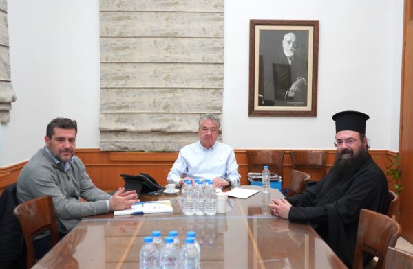 Ο Σεβασμιότατος κ. Γεράσιμος ευχαριστώντας τον Περιφερειάρχη Σταύρο Αρναουτάκη για την διασφάλιση της χρηματοδότησης για την αποκατάσταση-επισκευή του Ιερού Μητροπολιτικού Ναού, του πρόσφερε αναμνηστικό αντίγραφο εκ των κειμηλίων του Ιερού Μητροπολιτικού Ναού Μεγάλης Παναγίας Νεαπόλεως.