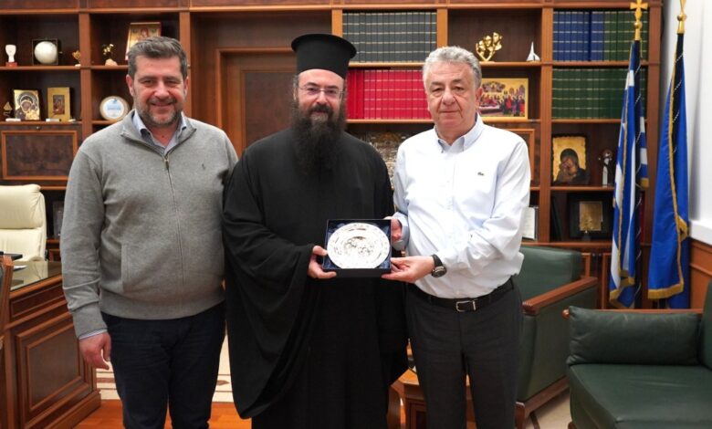 Ο Σεβασμιότατος κ. Γεράσιμος ευχαριστώντας τον Περιφερειάρχη Σταύρο Αρναουτάκη για την διασφάλιση της χρηματοδότησης για την αποκατάσταση-επισκευή του Ιερού Μητροπολιτικού Ναού, του πρόσφερε αναμνηστικό αντίγραφο εκ των κειμηλίων του Ιερού Μητροπολιτικού Ναού Μεγάλης Παναγίας Νεαπόλεως.