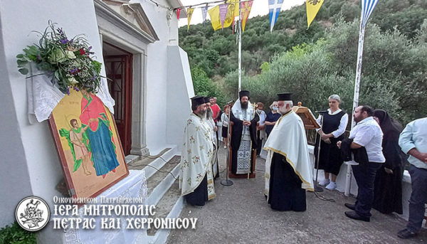 Στο φερώνυμο εκκλησάκι των Αγίων μαρτύρων Κηρύκου και Ιουλίττης της ενορίας Χουμεριάκου χοροστάτησε στην Ακολουθία του Εσπερινού που τελέσθηκε το απόγευμα της Πέμπτης, 14 Ιουλίου, ο Μητροπολίτης Πέτρας και Χερρονήσου κ. Γεράσιμος.