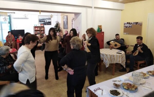 Ακολούθησαν τα Κάλαντα από τον Κωστή Χρονάκη στη λύρα και τον Μιχάλη Υγειονομάκη στο λαούτο και παραδοσιακοί κρητικοί χοροί από τα μέλη της χορευτικής ομάδας του Κ.Α.Π.Η., με την συνδρομή της σχολής χορού «Σπίτι της Τέχνης» της Ανδριάνης Γαλανού.