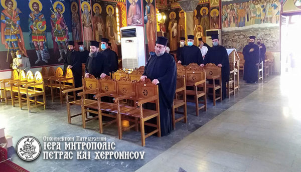 Μετά το πέρας της Θείας Λειτουργίας ο Σεβασμιώτατος Ποιμενάρχης έδωσε κατευθυντήριες γραμμές προς τους Ιερείς της μητροπολιτικής περιφέρειας Χερσονήσου σχετικά με την τέλεση των Ιερών Ακολουθιών κατά την Μεγάλη και την Διακαινήσιμο Εβδομάδα.