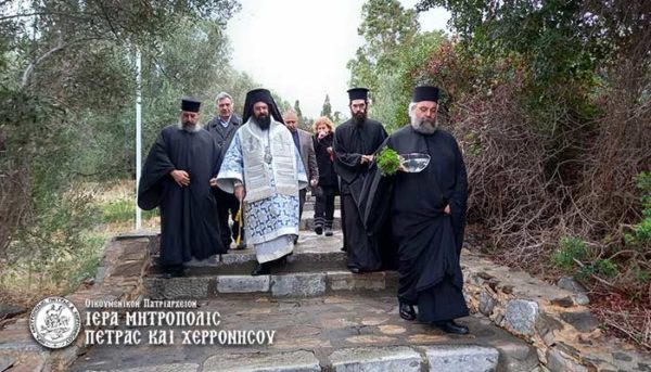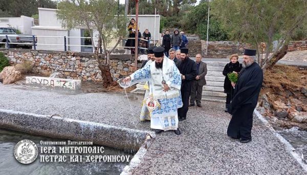 Προ της απολύσεως ο Σεβασμιώτατος Ποιμενάρχης τέλεσε τον καθιερωμένο καθαγιασμό των υδάτων στο λιμανάκι της περιοχής.