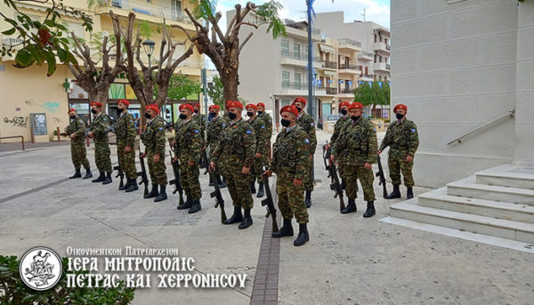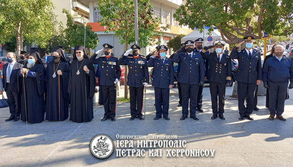 Οι εορταστικές εκδηλώσεις με αφορμή την Ημέρα των Ενόπλων Δυνάμεων συνεχίσθηκαν με την τέλεση Επιμνημόσυνης Δέησης από τον Σεβασμ. Μητροπολίτη Πέτρας και Χερρονήσου κ. Γεράσιμο, έμπροσθεν του μνημείου του Αγνώστου Στρατιώτη. Ο Σεβασμιώτατος εδεήθη υπέρ μακαρίας μνήμης και αιωνίου αναπαύσεως πάντων των ευκλεώς αγωνισαμένων, των υπερασπισθέντων των συνόρων της Πατρίδος και του Γένους ημών και ενδόξως πεσόντων εν τοις αγώσι του Έθνους.