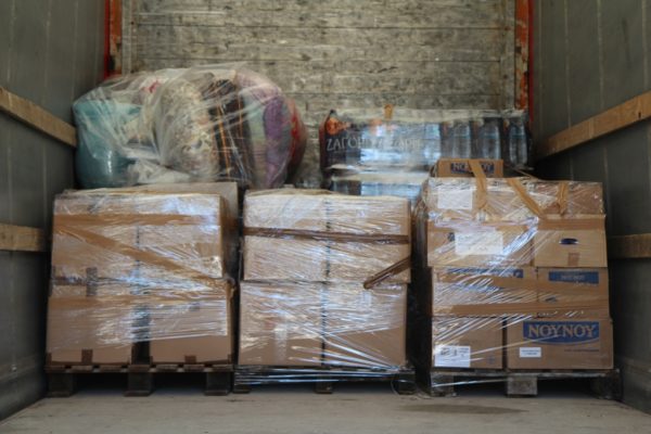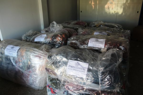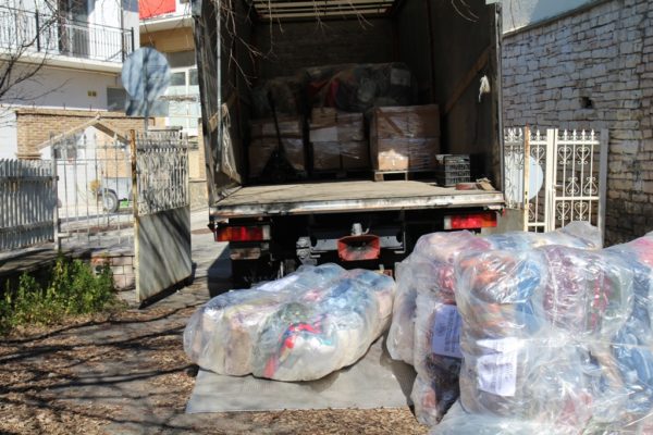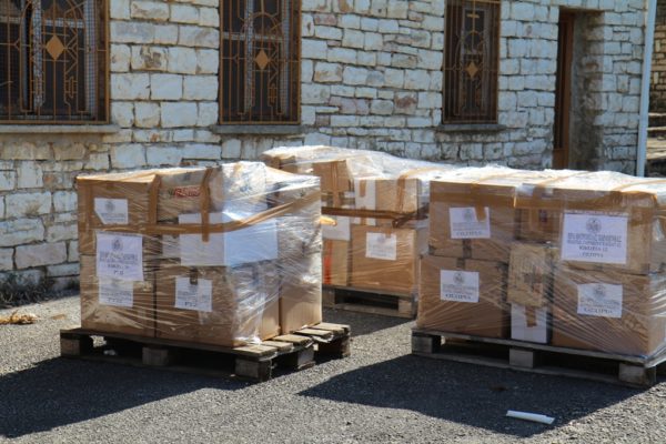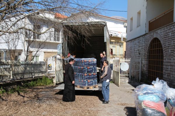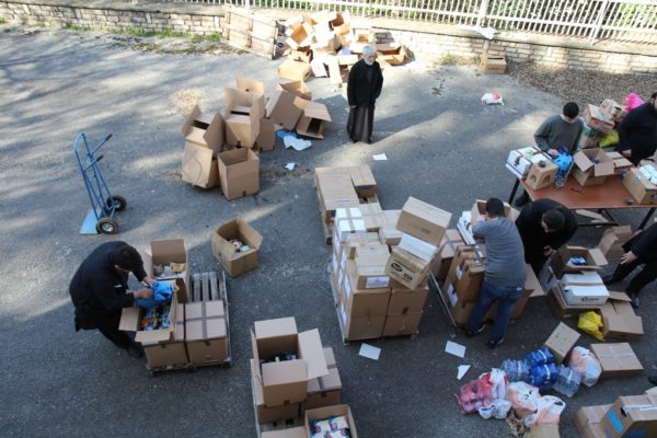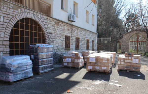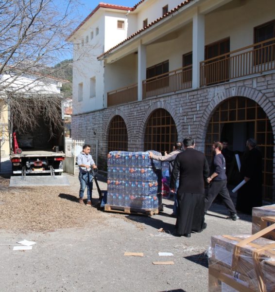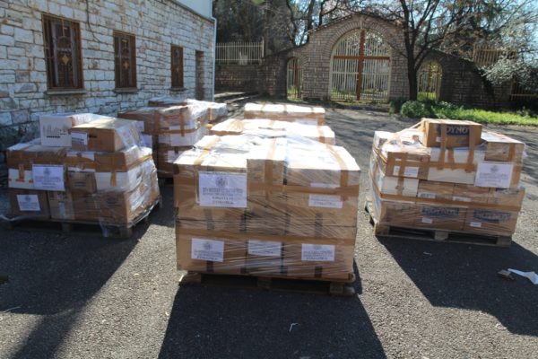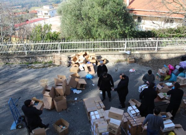Όλο το ανθρωπιστικό υλικό από τις Ενορίες, συγκεντρώθηκε στο Πνευματικό Κέντρο της Ιεράς Μητροπόλεως και ομάδα συνεργατών της το ταξινόμησε κατά είδος και το συσκεύασε σε κιβώτια και παλέτες.