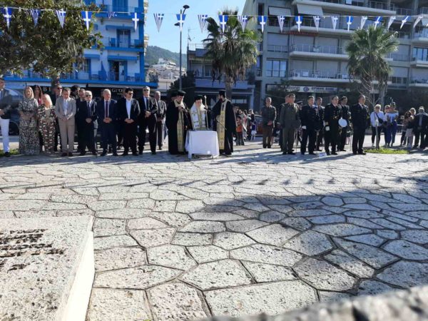 Ακολούθησε η επιμνημόσυνη δέηση υπέρ αναπαύσεως των ηρωικώς αγωνισαμένων και ενδόξως πεσόντων στο μνημείο των Ηρώων, κατάθεση στεφάνων από την πολιτική και στρατιωτική ηγεσία και ο εορτασμός της επετείου ολοκληρώθηκε με παρέλαση Σχολείων και Συλλόγων της πόλεως της Ηγουμενίτσας.