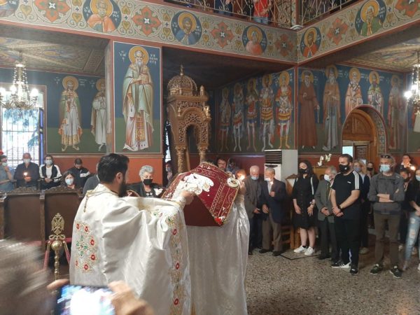 H περιφορά του Επιταφίου έγινε εντός του Ιερού Ναού σύμφωνα με την Εγκύκλιο της Ιεράς Συνόδου της Εκκλησίας της Ελλάδος και τηρουμένων όλων των απαραίτητων μέτρων προς αποφυγήν της εξάπλωσης του κορωνοϊού.