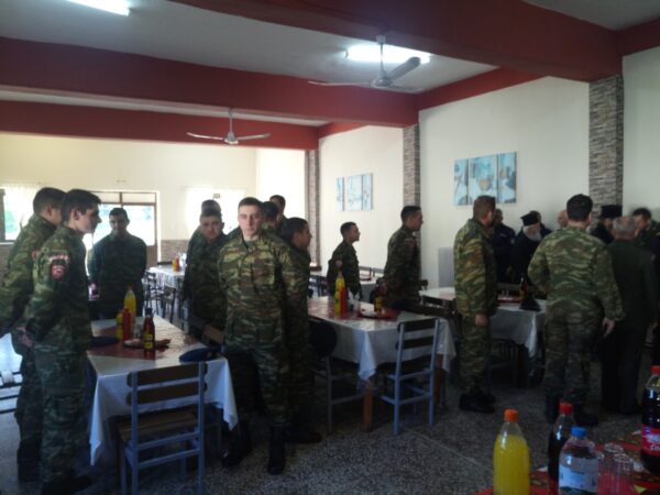Εν συνεχεία ο Σεβασμιώτατος με την συνοδεία του μετέβη στο 628 Τάγμα Πεζικού Φιλιατών όπου στρατιώτες του έψαλλαν τα κάλαντα και έκοψε την πρωτοχρονιάτικη πίτα και στους στρατιώτες ευχήθηκε καλοί πολίτες και το 2020 να είναι στα σπίτια τους με τις οικογένειές τους.