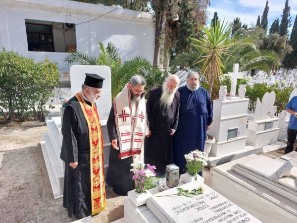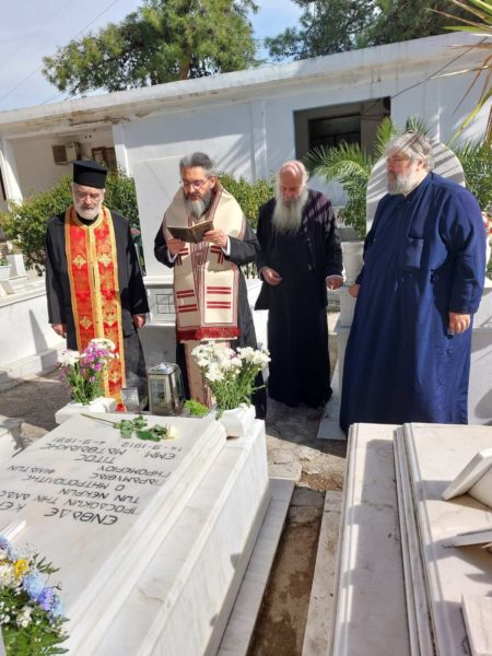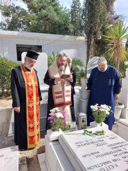 Αμέσως μετά τη Θεία Λειτουργία για την εορτή του Πολιούχου της Ιεράς Μητροπόλεως Νέας Ιωνίας και Φιλαδελφείας, Αγίου Γεωργίου του Νεαπολίτου, ο Σεβασμιώτατος Μητροπολίτης Παραμυθίας κ. Σεραπίων μετέβη την Παρασκευή 3 Νοεμβρίου 2023, στο Κοιμητήριο της Νέας Φιλαδέλφειας όπου μέσα σε κλίμα συγκίνησης, τέλεσε Τρισάγιο στον τάφο του προκατόχου του, μακαριστού Μητροπολίτη Παραμυθίας κυρού Τίτου Ματθαιάκη.