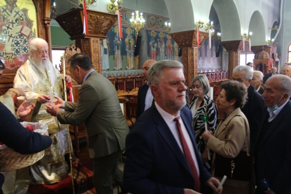 Στο τέλος ο Σεβασμιώτατος μοίρασε κόκκινα αυγά ευχόμενος προς όλους Χριστός Ανέστη και Χρόνια Πολλά.