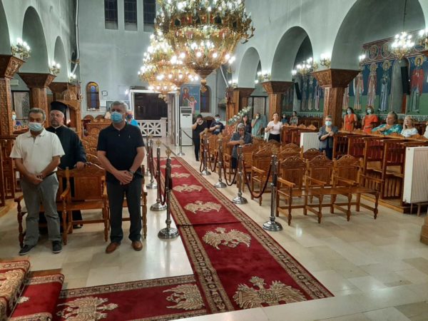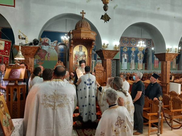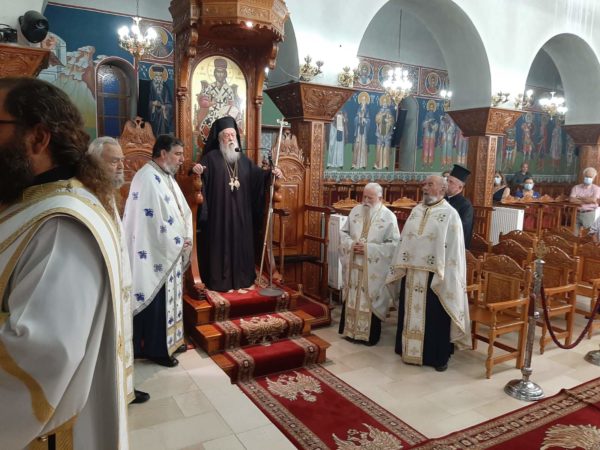 Μετά το πέρας της Θείας Λειτουργίας, ο Σεβασμιώτατος δέχθηκε ευχές από τις αρχές του τόπου, κληρικούς και πιστούς.
