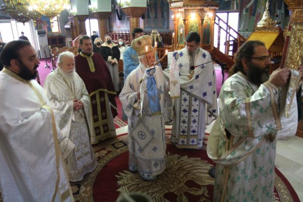 Η Αρχιερατική Θεία Λειτουργία ιερουργήθηκε από τον Μητροπολίτη Παραμυθίας κ. Τίτο συνοδευόμενο από τον Γενικό Αρχιερατικό Επίτροπο πρωτοπρεσβύτερο π. Βελισσάριο Σάντα και τους κληρικούς της Ιεράς Μητρόπολης, τηρουμένων όλων των απαραίτητων μέτρων προς αποφυγήν της εξάπλωσης του κορωνοϊού, όπως προβλέπει η νέα Κ.Υ.Α.