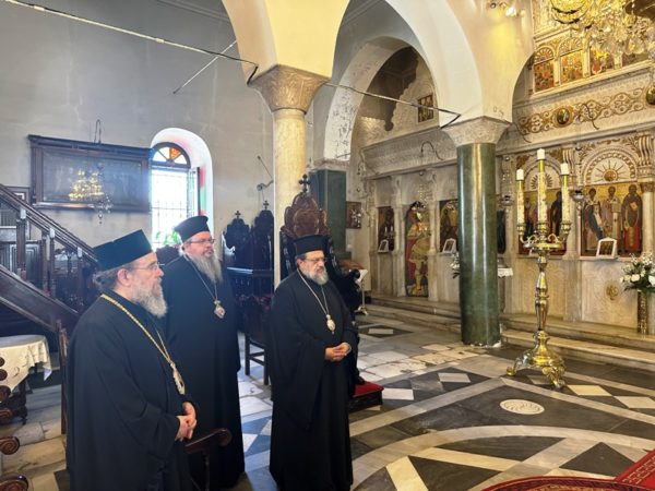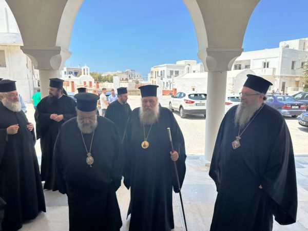 Ο Σεβασμιώτατος Μητροπολίτης κ. Καλλίνικος υποδέχθηκε τους Αρχιερείς στα Γραφεία της Ιεράς Μητροπόλεως Παροναξίας, αφού πρώτα επισκέφθηκαν και ξεναγήθηκαν στον ιστορικό Ιερό Μητροπολιτικό Ναό Ζωοδόχου Πηγής Νάξου.