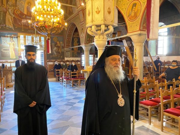 Ο Σεβασμιώτατος χοροστάτησε στον Όρθρο, ιερούργησε και κήρυξε τον θείο λόγο, συλλειτουργούντων του Πρωτοσυγκελλεύοντος της Ιεράς Μητροπόλεως Αρχιμ. Δωροθέου Βενετσανοπούλου, του Εφημερίου του Ιερού Ναού και Γενικού Αρχιερατικού Επόπτου Νάξου Πρωτοπρ. Ιωάννου Μανιού και του Διακόνου Νεκταρίου Σκουλάτου. Προ της Απολύσεως προέστη του Μνημοσύνου του αειμνήστου Θεμιστοκλέους (Θέμου) Λιανοπούλου.