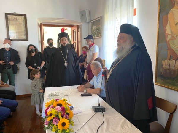 Ακολούθησε ομιλία του Εφημερίου της Ενορίας και σύντομοι χαιρετισμοί των αναφερθέντων επισήμων, του κ. Αντώνη Τζιώτη, Φιλολόγου και μέλους της Δ.Ε. του Μουσείου καθώς και του κ. Γεωργίου Ρουσάκη, πατέρα της κ. Ειρήνης Ρουσάκη, στην οποία και προσέφερε ο Σεβασμιώτατος αναμνηστικό δίπτυχο (εις μνήμην του συζύγου της) με τις Εικόνες του Χριστού και της Παναγίας. Αναμνηστικά προσφέρθηκαν και σε όλα τα μέλη της «Ομάδας Αιγαίου», που απαρτίζεται από επιστήμονες διαφόρων ειδικοτήτων, κυρίως ιατρών.