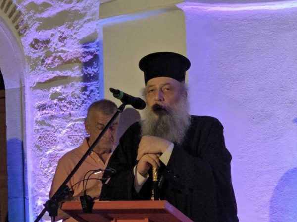 Στο τέλος της εκδήλωσης, τον λόγο έλαβε ο Σεβασμιώτατος, ο οποίος απηύθυνε σύντομη προσλαλιά, σκιαγραφώντας και εξαίροντας την ποιμαντική διακονία και το ήθος του μακαριστού προκατόχου του. Συνεχάρη δε τον Πρόεδρο του Συλλόγου Μαρπησσαίων & Αρχιλοχιτών κ. Κωνσταντίνο Ροδόπουλο, τα μέλη καθώς και όλους τους συντελεστές της όμορφης αυτής εκδηλώσεως και ευχήθηκε προς όλους εν όψει της εορτής της Μεταμορφώσεως του Σωτήρος, ημέρα κατά την οποία πανηγυρίζει η Ενορία του χωριού.