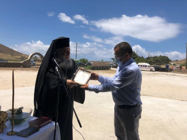 Στην τελετή συμμετείχε και ο Ηγούμενος της Ιεράς Μονής Λογγοβάρδας Αρχιμ. Χρυσόστομος Πήχος, εκπρόσωποι των Αρχών, Φορέων και Συλλόγων του νησιού, αρκετοί εκπαιδευτικοί και πολλοί πολίτες της Πάρου.