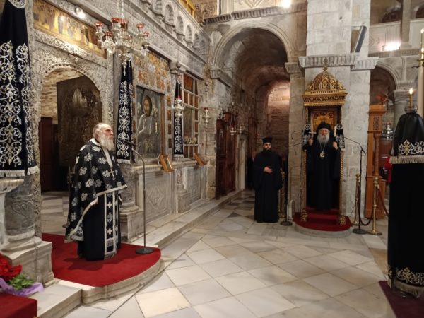 Στην ακολουθία συμμετείχαν οι πατέρες του Ιερού Προσκυνήματος καθώς και ο Αρχιδιάκονος π. Νεκτάριος Σκουλάτος.