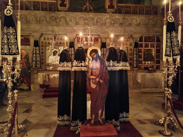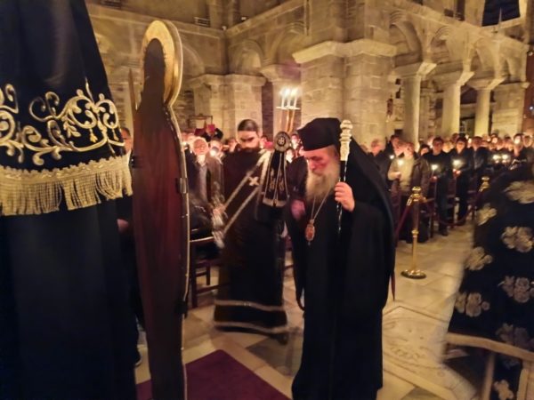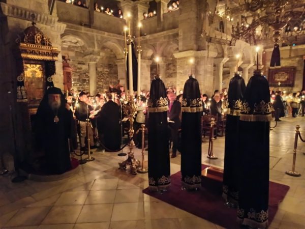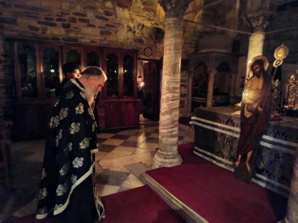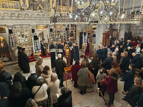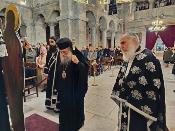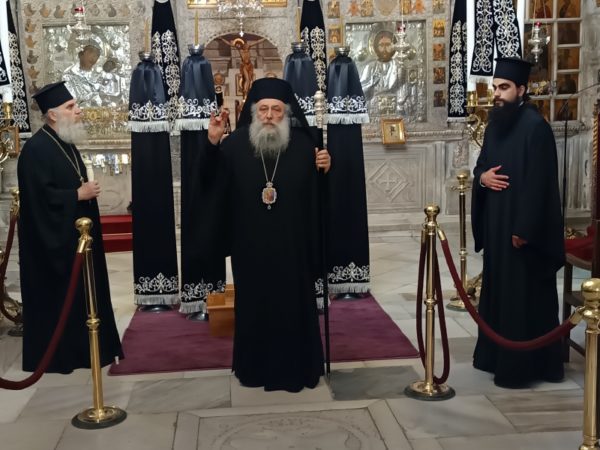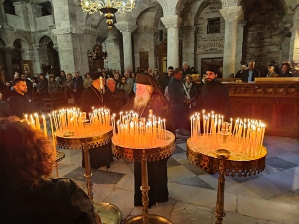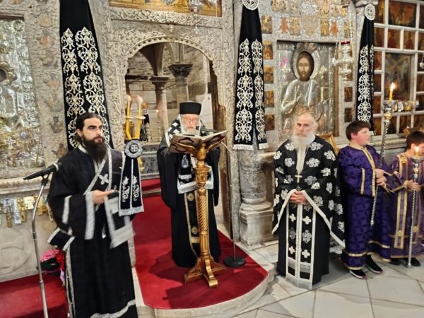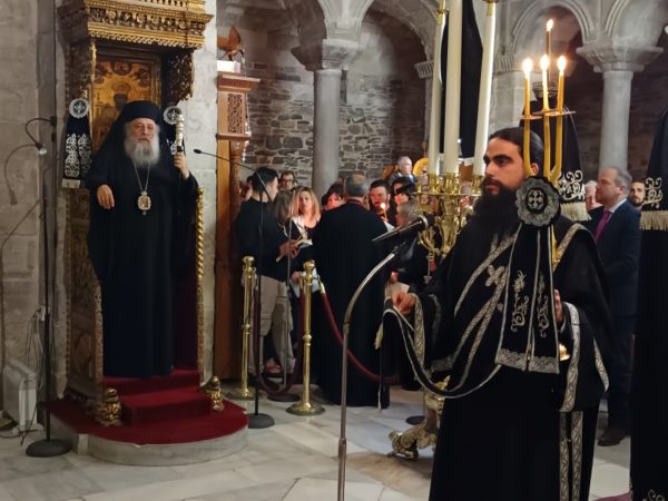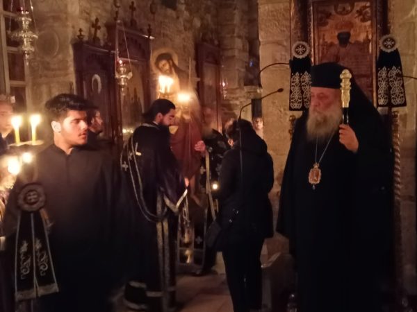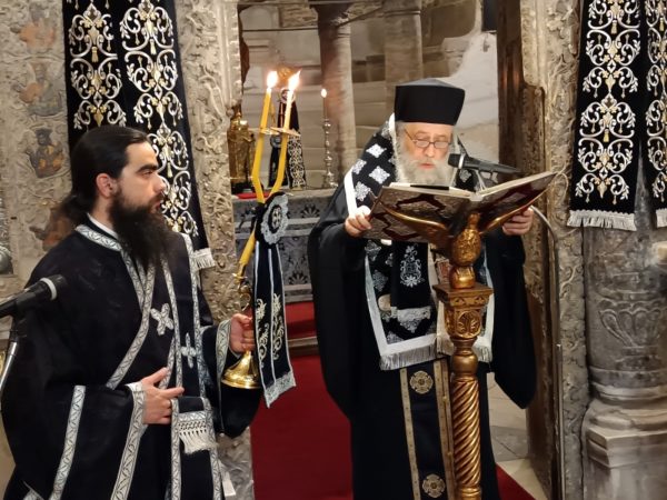 Στην ακολουθία συμμετείχαν οι πατέρες του Ιερού Προσκυνήματος καθώς και ο Αρχιδιάκονος π. Νεκτάριος Σκουλάτος.