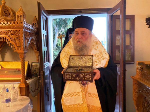 Μετά τον Εσπερινό πραγματοποιήθηκε η Λιτάνευση της Εικόνος και των Ιερών Λειψάνων. Επανελθούσης της Ιεράς Λιτανεύσεως και μετά τη Δέηση, ο Σεβασμιώτατος απηύθυνε ευχές προς όλους και ευχαρίστησε τον τελεταρχούντα Πρωτοσύγκελλο της Ιεράς Μητροπόλεως, Αρχιμ. Δωρόθεο Βενετσανόπουλο, τον π. Χρυσόστομο για την ομιλία του, τους Ιερείς του Ιερού Ναού και τους συνεργάτες τους για την προετοιμασία τους καθώς και όλους τους συμμετέχοντες στις Ιερές Ακολουθίες.