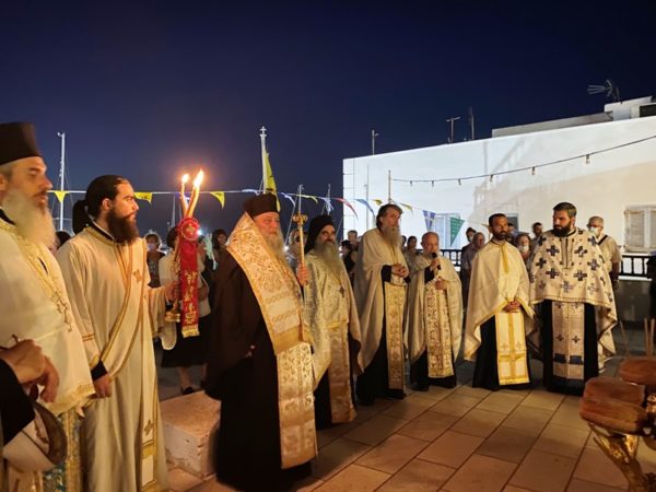 Στη συνεχεία τελέσθηκε ο Πανηγυρικός Εσπερινός, χοροστατούντος του Μητροπολίτη Παροναξίας κ. Καλλινίκου και τη συμμετοχή του Αρχιμ. Προδρόμου Αργυροπούλου (Κληρικού της Ι.Μ. Νέας Ιωνίας), του Καθηγούμενου της Ι.Μ. Φανερωμένης Νάξου, Αρχιμ. Χρυσοστόμου Σταυράκη, ο οποίος κήρυξε και τον θείο λόγο, του Αρχιερατικού Επιτρόπου Τραγαίας-Δρυμαλίας, Αρχιμ. Χρυσοστόμου Κοττάκη, του Γενικού Αρχιερατικού Επιτρόπου της Ιεράς Μητροπόλεως, Πρωτοπρ. Κωνσταντίνου Κύλη, του Πρεσβ. Σταύρου Μπαράκα (Κληρικού της Ιεράς Αρχιεπισκοπής Αθηνών) των Εφημερίων της νήσου, Πρωτοπρ. Αποστόλου Βελώνη και Νικολάου Ρώτα, των Οικον. Τιμολέοντος Αθανασοπούλου και Μιχαήλ Φραγκουλοπούλου, του Ιερομ. Χριστοφόρου Μακαρέ, του οικείου Εφημερίου, Πρεσβ. Νικολάου Κασμά και του Διακ. Νεκταρίου Σκουλάτου.