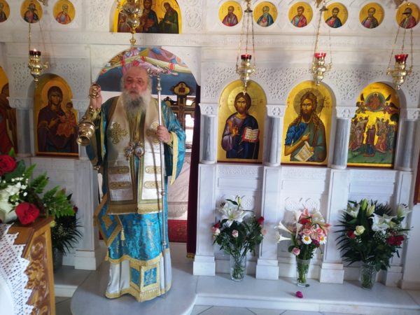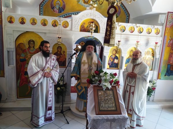 Συμμετείχαν ο οικείος Εφημέριος Πρωτοπρ. Συμεών Τελόπουλος και ο Διάκονος Νεκτάριος Σκουλάτος. Ο Σεβασμιώτατος μετέβη στον ως άνω Ιερό Ναό, όπου χοροστάτησε στον Όρθρο, ευλόγησε τους προσφερθέντες άρτους, ιερούργησε και κήρυξε τον θείο λόγο.