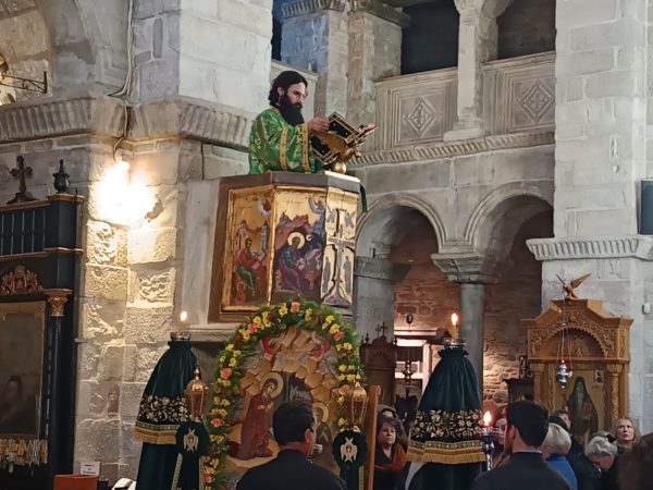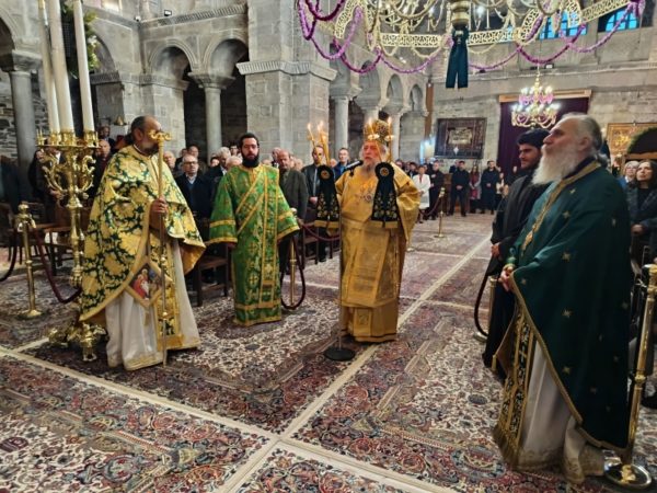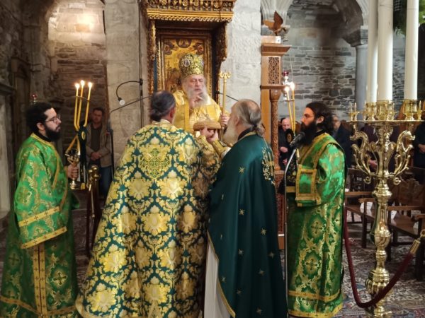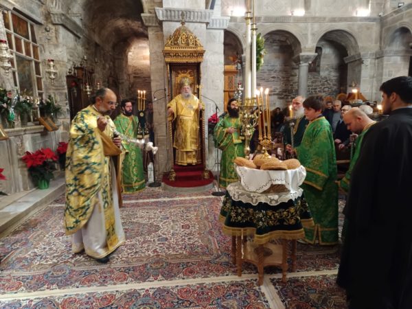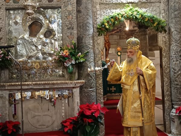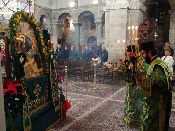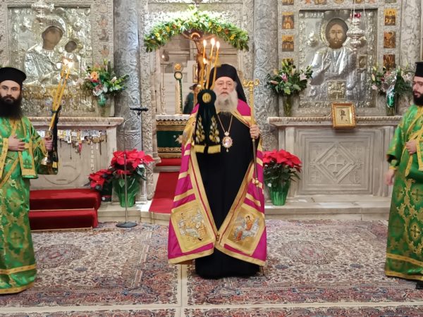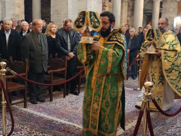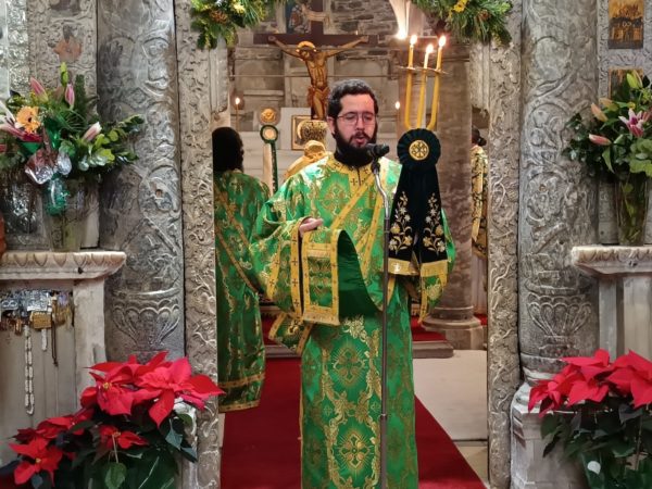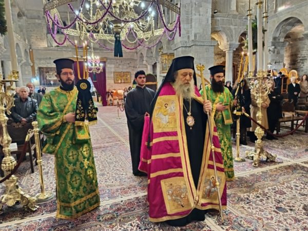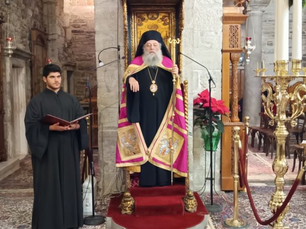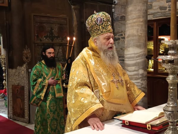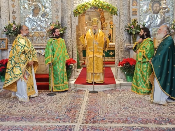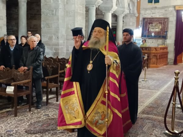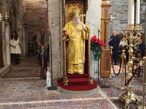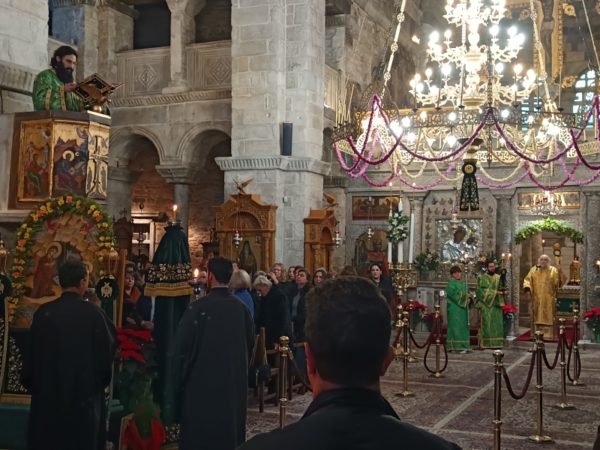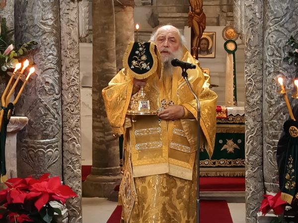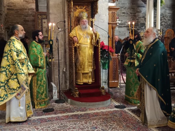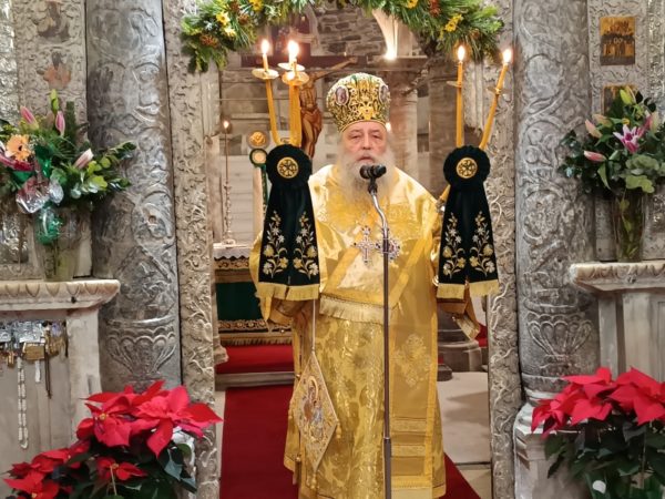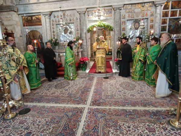 Στο τέλος της Θείας Λειτουργίας, ο Σεβασμιώτατος απηύθυνε προς τους κληρικούς και τους πιστούς πατρικές εόρτιες ευχές και εν συνεχεία διένειμε το αντίδωρο.