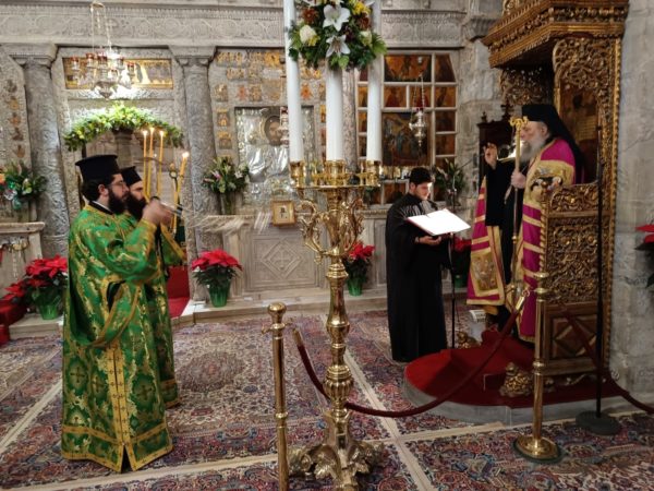 Την Πέμπτη 25 Δεκεμβρίου 2025, ο Σεβασμιώτατος Μητροπολίτης Παροναξίας κ. Καλλίνικος, χοροστάτησε στον Όρθρο, ευλόγησε τους προσφερθέντες άρτους και προεξήρχε της Θείας Λειτουργίας, πλαισιούμενος από τους πατέρες του Ιερού Προσκυνήματος, Πρωτοπρεσβυτέρους π. Στυλιανό Μπιζά και π. Χρήστο Πετρόπουλο, καθώς και τους Διακόνους π. Δαυίδ Καρυτινό και π. Παναγιώτη Κοσμόπουλο.
