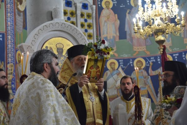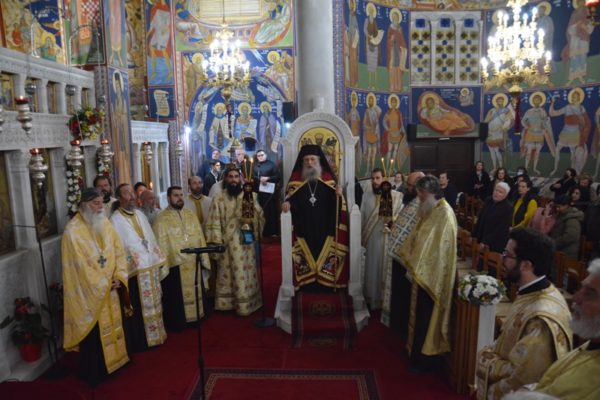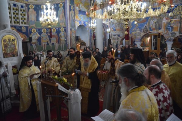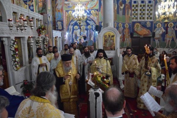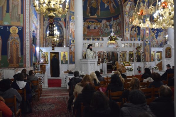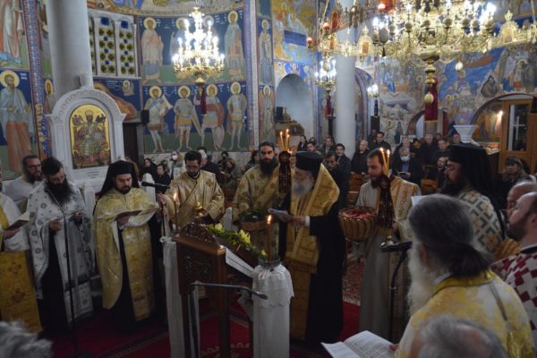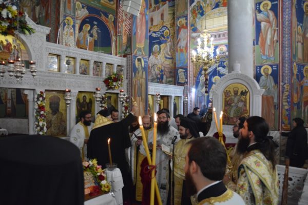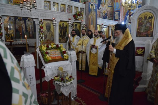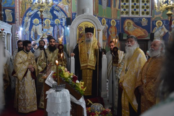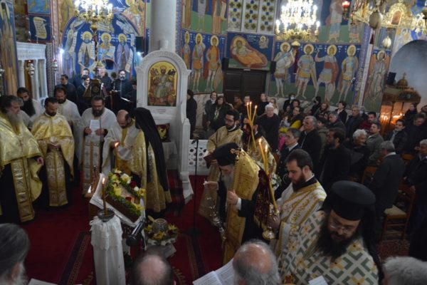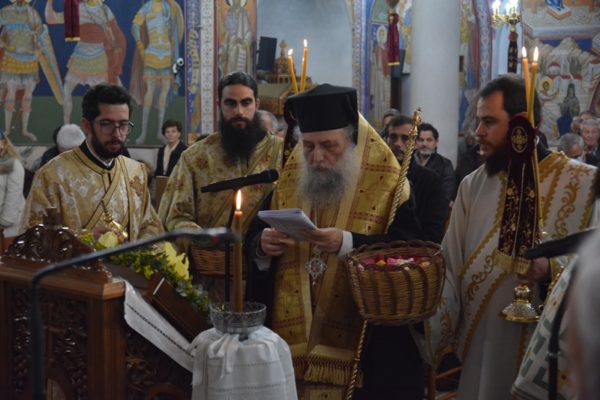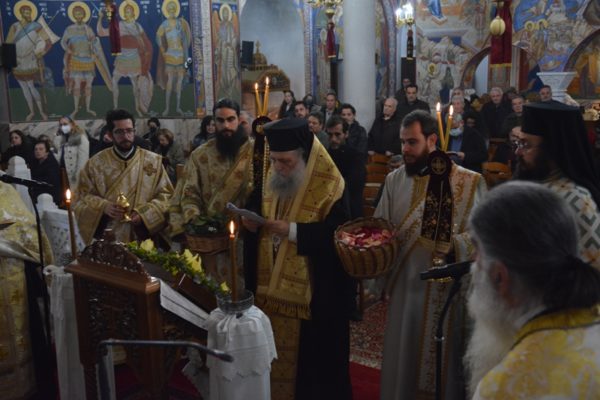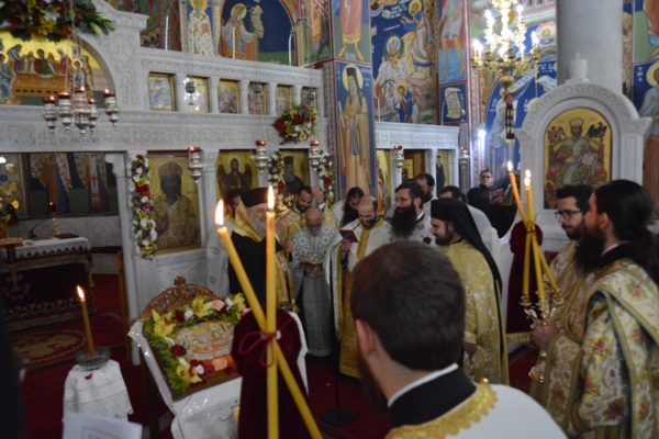 Τον θείο λόγο κήρυξε ο Ιεροκήρυξ της Ιεράς Μητροπόλεως Αρχιμανδρίτης Αρσένιος Μελισιανός. Στο τέλος της Ιεράς Ακολουθίας, προ του Ιερού Λειψάνου και του Επιτραχηλίου του Αγίου, εψάλησαν τα Εγκώμια του τιμωμένου. Προ του «Δι’ ευχών» ο Σεβασμιώτατος απηύθυνε ευχές και ακολούθησε Ιερά αγρυπνία.