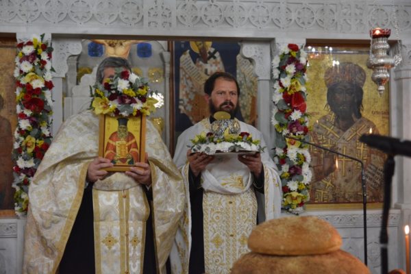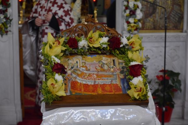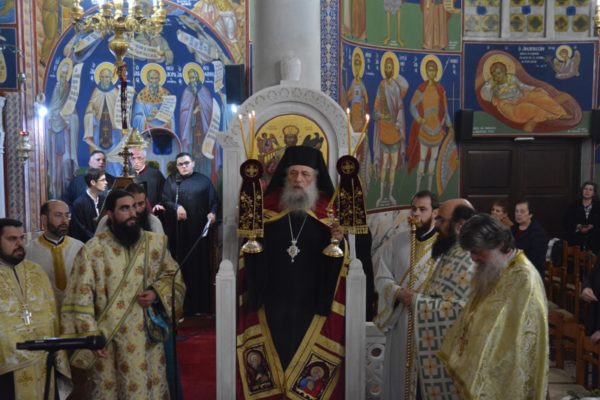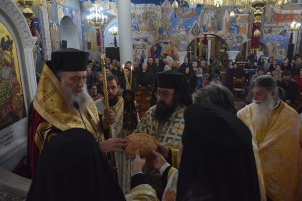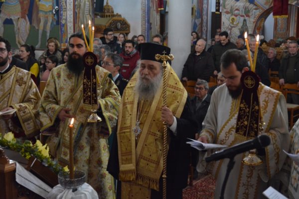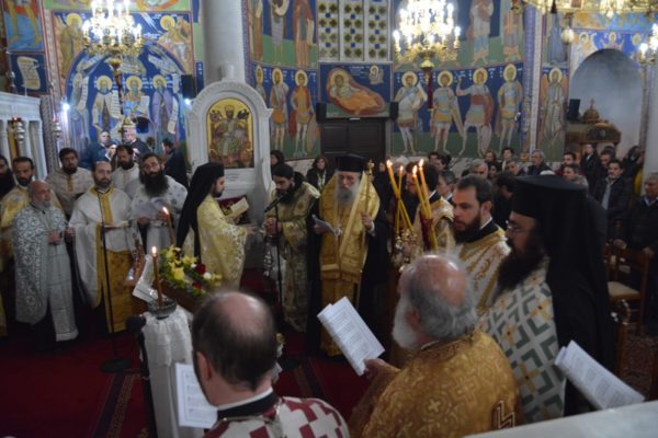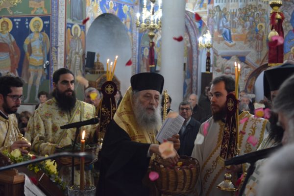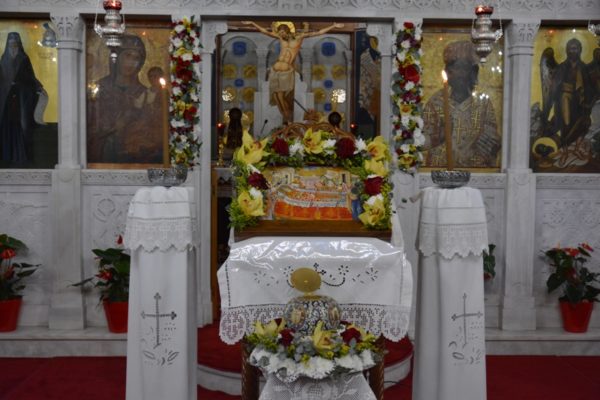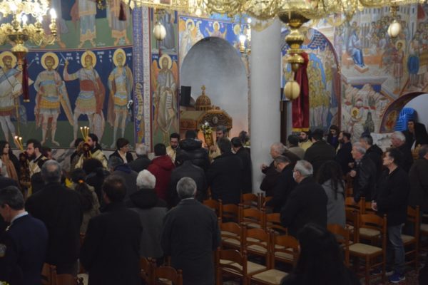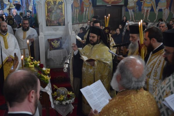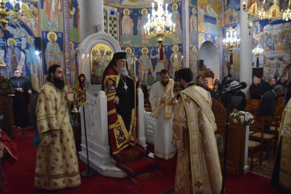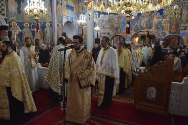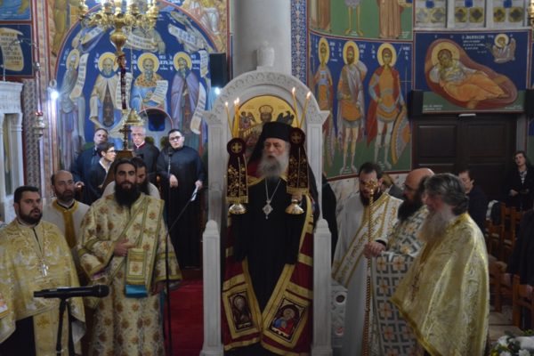 Τον θείο λόγο κήρυξε ο Ιεροκήρυξ της Ιεράς Μητροπόλεως Αρχιμανδρίτης Αρσένιος Μελισιανός. Στο τέλος της Ιεράς Ακολουθίας, προ του Ιερού Λειψάνου και του Επιτραχηλίου του Αγίου, εψάλησαν τα Εγκώμια του τιμωμένου. Προ του «Δι’ ευχών» ο Σεβασμιώτατος απηύθυνε ευχές και ακολούθησε Ιερά αγρυπνία.