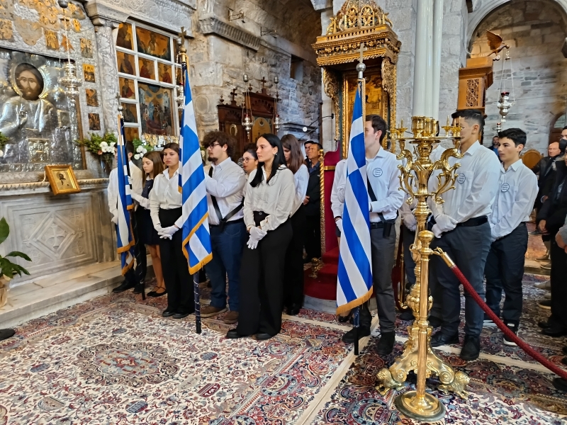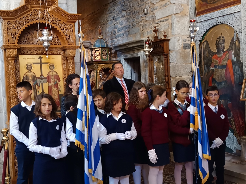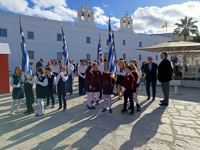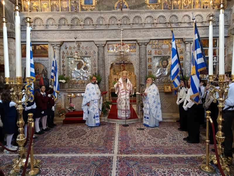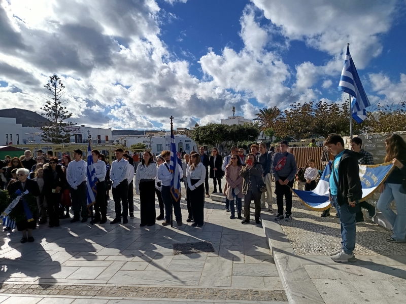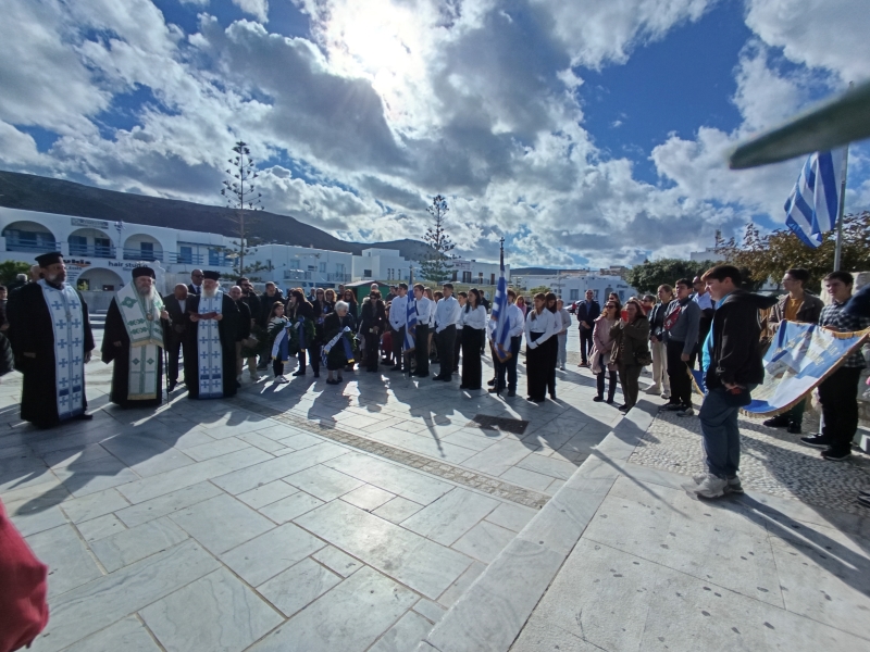 Μετά το πέρας της Θείας Λειτουργίας, ο Σεβασμιώτατος Μητροπολίτης προέστη της Δοξολογίας επί τη επετείω της Εθνικής Αντιστάσεως της νήσου, στην οποία παρέστησαν οι Τοπικές Αρχές, εκπρόσωποι των Σωμάτων Ασφαλείας, μαθητές των Σχολείων της Παροικίας συνοδευόμενοι από τους Δασκάλους και Καθηγητές τους, αλλά και πλήθος κόσμου.