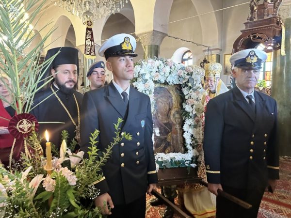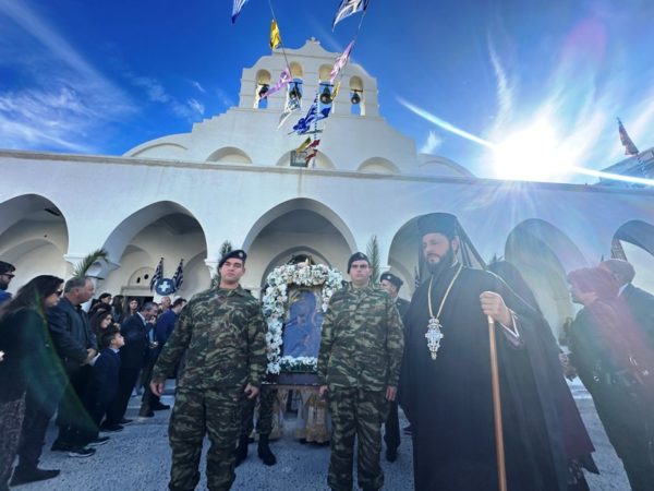 Ακολούθως τελέσθηκε η Επίσημη Δοξολογία επί τη εορτή των Ενόπλων Δυνάμεων και εν συνεχεία πραγματοποιήθηκε η Λιτάνευση της Εφεστίου Εικόνος της Παναγίας Χρυσοπολιτίσσης.