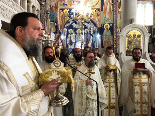Της Θείας Λειτουργίας, η οποία τελέσθηκε στον πανηγυρίζοντα Ιερό Ενοριακό Ναό Αγίου Νικοδήμου πόλεως Νάξου, προεξήρχε ο Σεβασμιώτατος Μητροπολίτης Νέας Ιωνίας, Φιλαδελφείας, Ηρακλείου και Χαλκηδόνος κ. Γαβριήλ, ο οποίος χοροστάτησε στον Όρθρο και κήρυξε και τον θείο λόγο, συλλειτουργούντων των Σεβασμιωτάτων Μητροπολιτών Θήρας, Αμοργού και Νήσων κ. Αμφιλοχίου και του Ποιμενάρχου κ. Καλλινίκου.