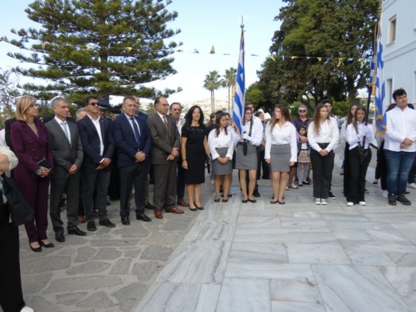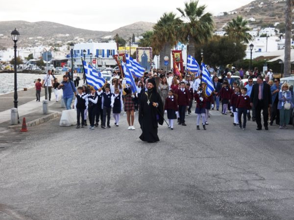 Στην Θεία Λειτουργία συμμετείχαν κληρικοί από την Πάρο και τη Νάξο, ο Αναπληρωτής Υπουργός σε θέματα Αθλητισμού και Βουλευτής Κυκλάδων κ. Γιάννης Βρούτσης, ο Έλληνας Πρωταθλητής και Ολυμπιονίκης κ. Βασίλης Πολύμερος, ο Δήμαρχος Πάρου κ. Μάρκος Κωβαίος, ο Έπαρχος Πάρου-Αντιπάρου κ. Κώστας Μπιζάς, Αντιδήμαρχοι, Δημοτικοί Σύμβουλοι, Εκπρόσωποι των Σωμάτων Ασφαλείας του νησιού, αντιπροσωπείες μαθητών των σχολικών μονάδων της πόλεως με τις σημαίες τους, εκπρόσωποι πολιτιστικών φορέων και συλλόγων του νησιού και πλήθος κόσμου.