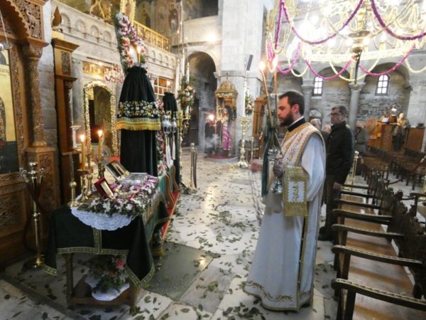 11/11/2022 11/11/2022 Με κατάνυξη τιμήθηκε στη νήσο Πάρο, η Ιερά Μνήμη της Πολιούχου Παροικίας, Οσίας Μητρός Θεοκτίστης. Στο Πανηγυρίζον Ιερό Προσκύνημα Παναγίας Εκατονταπυλιανής (όπου και ο τάφος της Αγίας), τελέσθηκε Αρχιερατικό συλλείτουργο, προεξάρχοντος του Μητροπολίτη Παροναξίας κ. Καλλινίκου και συλλειτουργούντος του Θεοφιλεστάτου Επισκόπου Κεράμων κ. Βαρθολομαίου, ο οποίος και χοροστάτησε στον Όρθρο. Στην Θεία Λειτουργία, την Τετάρτη...