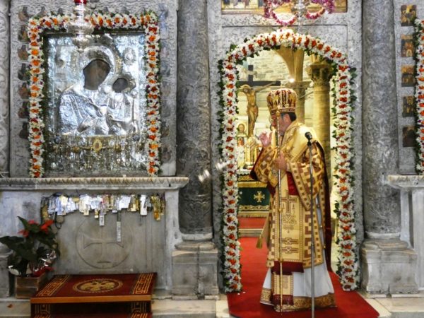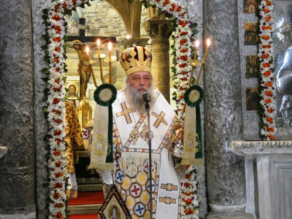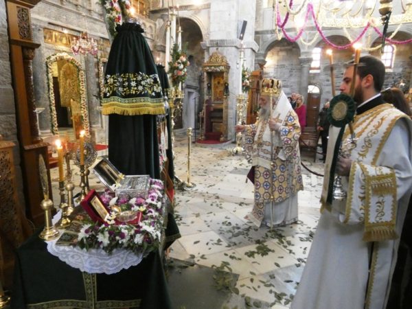 Επανελθούσης της Λιτανείας και αφού εψάλη η ακροτελεύτιος Δέηση, ο Σεβασμιώτατος ευχαρίστησε για την συμμετοχή τους στην πανήγυρη, τον Θεοφιλέστατο, τον Ιερό Κλήρο και όλους τους προαναφερθέντες επισήμους και εκπροσώπους, συνεχάρη δε τους Ιερείς του Ιερού Προσκυνήματος και τα Μέλη της Διοικούσης Επιτροπής για την άρτια διοργάνωση της Πανηγύρεως, τους Ιεροψάλτες για την μελωδική απόδοση των Ιερών Ύμνων και απηύθυνε προς όλους πατρικές ευχές.